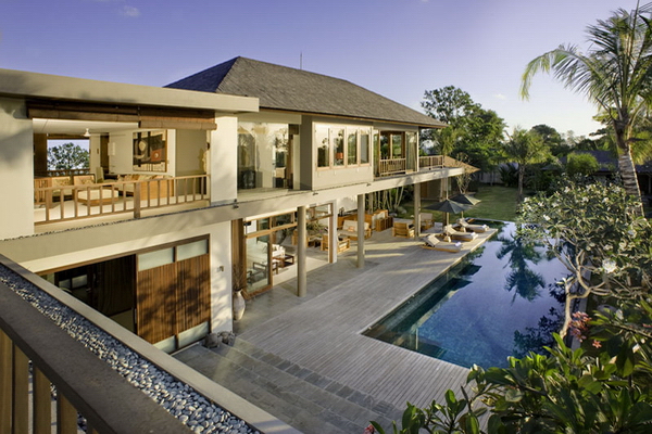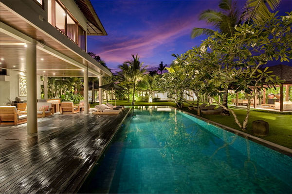 Villa Azaya is a contemporary-styled, five-bedroom, Bali rental villa, located just 50 metres from the beach in the Petitenget/Seminyak neighbourhood on Bali’s southwest coast. Covering 2100 square metres, the shingle-roof property comprises a large two-storey building complemented by a fully independent two- bedroom guesthouse, stand-alone gym, poolside gazebo and 20-metre swimming pool, well integrated within an expansive, flat-lawned garden.