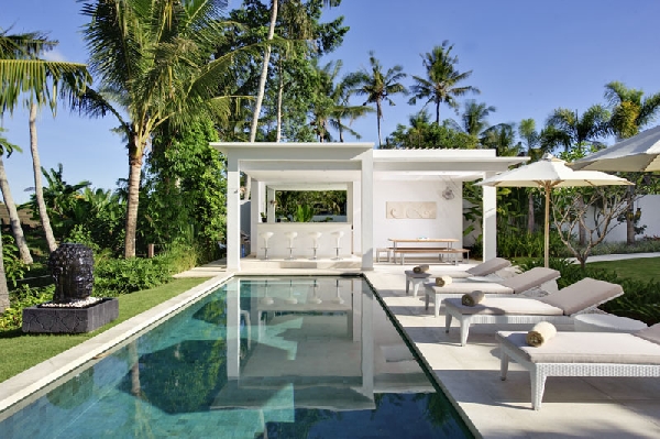 Peaceful and secluded, the fully-staffed four bedroom Villa Sadia rests beside the rice fields, just ten minutes’ drive from the beach, in a small village in southwest Bali. At this elegant Bali holiday villa, everything possible has been considered for the comfort and entertainment of the guests, making it ideal for families or for groups of friends. The out of town setting presents a captivating insight into the traditions of rural Bali, yet it is only a short drive from the nightlife, shops and the cosmopolitan restaurants of trendy Seminyak.