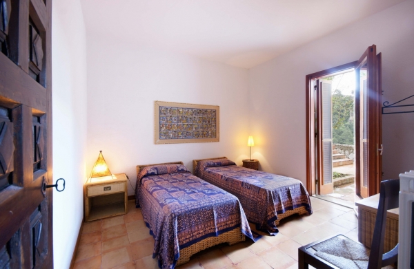Main house: The villa is exceptionally well appointed with an inviting and friendly ambiance, furnished with modern and comfortable furniture, terracotta floors, and attractive décor. The entrance leads into a charming living room with elegant stone walls and seating area for eight on comfortable, white couches and coordinating armchairs, coffee table, CD player, satellite TV, and dining area for 8. A panoramic window and access to the east terrace, situated in an enviable position surrounded by numerous trees, is ideal for relaxing and outside dining (equipped with dining furniture). Spacious kitchen with all modern facilities such as 4-range stovetop, dishwasher, microwave, toaster, espresso coffee maker, electric oven and refrigerator/freezer.